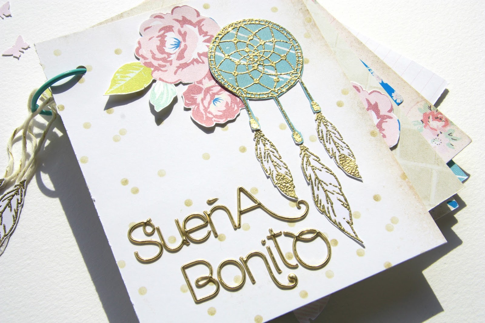 La inspiración de la portada viene de uno de los últimos packs de sellos que ha sacado Shei de La vida en scrap. He utilizado embossing para hacerme mis propios die cuts y que resalten un poquito más, algunos troqueles con la Big Shot, sellitos, foil, chipboards y algún que otro embellecedor y el resultado es el que os muestro a continuación.